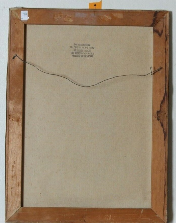Nato a Buffalo, New York, Anthony Sidoni (1919-2012) era un artista autodidatta con un talento naturale straordinario. Ha iniziato disegnando ritratti da bambino e la sua abilita e stata presto riconosciuta dal famoso artista petrolifero italiano, Tony Sisti, che ha dato ad Anthony diverse lezioni durante la lezione di pittura della comunita locale. Alla fine degli anni '60, Anthony espose arte in una mostra d'arte insieme al famoso artista Julian Ritter e in seguito ricevette il suo primo spettacolo da solo nella Galleria di Jane Freeman. Fu dopo questo che Anthony ottenne un vasto riconoscimento internazionale. Ha vissuto e dipinto a West Hollywood, in California, ed e stato votato "Artist of the Year" nel 2000 e nel 2001. (Fonte:Qart.com) Sia che tu stia cercando di acquistare articol