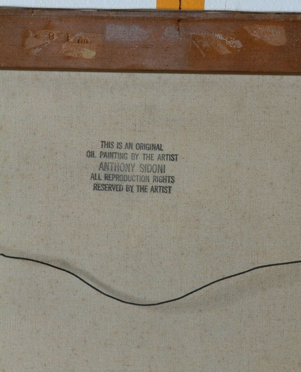 Nato a Buffalo, New York, Anthony Sidoni (1919-2012) era un artista autodidatta con un talento naturale straordinario. Ha iniziato disegnando ritratti da bambino e la sua abilita e stata presto riconosciuta dal famoso artista petrolifero italiano, Tony Sisti, che ha dato ad Anthony diverse lezioni durante la lezione di pittura della comunita locale. Alla fine degli anni '60, Anthony espose arte in una mostra d'arte insieme al famoso artista Julian Ritter e in seguito ricevette il suo primo spettacolo da solo nella Galleria di Jane Freeman. Fu dopo questo che Anthony ottenne un vasto riconoscimento internazionale. Ha vissuto e dipinto a West Hollywood, in California, ed e stato votato "Artist of the Year" nel 2000 e nel 2001. (Fonte:Qart.com)