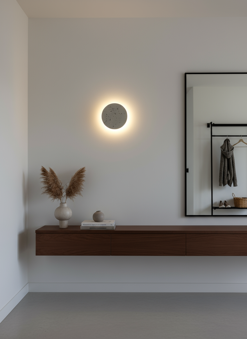 Lunaris | round designer concrete wall sconce with back lighting