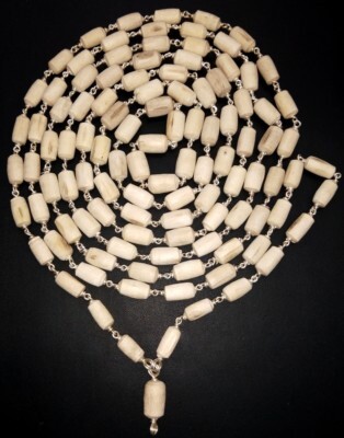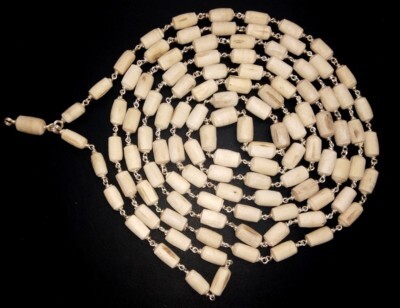 Adecuado para usar en dos pliegues (en dos pliegues de longitud, 21 pulgadas alrededor del cuello) Diseño : Hecho de cuentas tulsi blancas puras seleccionadas en alambre de plata fuerte que tiene un estilo de nudo tradicional. Tulsi significa "el incomparable". Tulsi es divinidad. Tiene apariencia, aroma y sabor muy distinguidos. Tulsi es recompensado como la 4 encarnacion de la diosa suprema y se usa para cantar mantras del Señor Vishnu, Ram y Krishna. Tulsi es considerado como la cuarta encarnacion de la diosa suprema. Según Ayurveda, es muy útil para curar las enfermedades de la garganta. Tambien se usa para la pur