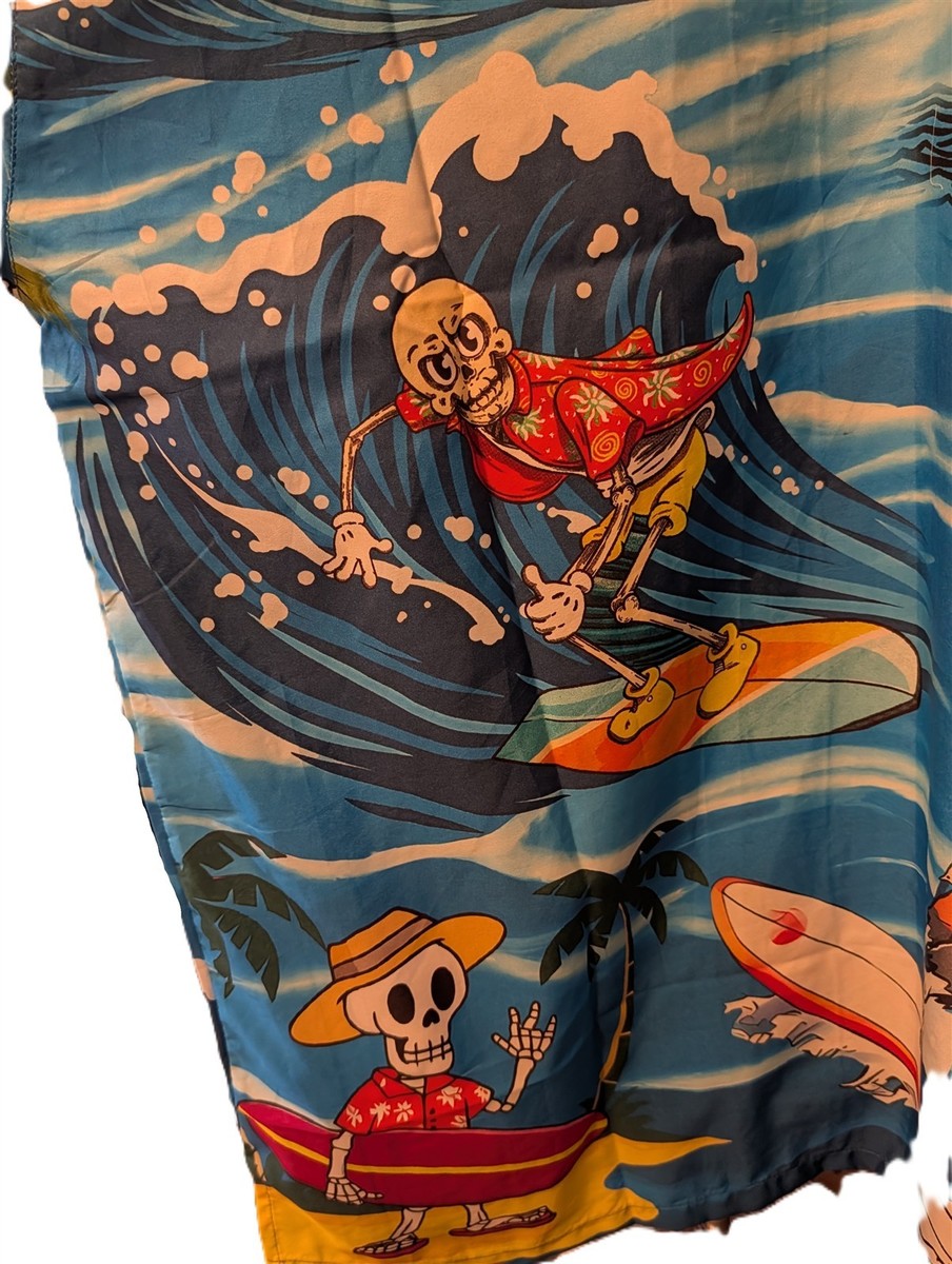 Surfing Skeleton Hawaiian Shirt Men’s Tropical Button-Up Aloha Beachwear ~New~
