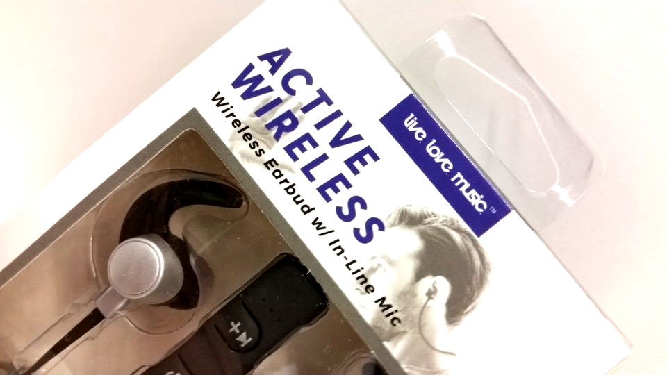 Active Wireless Black Earbuds In Line Mic Bluetooth Dynamic Stereo Ear Hooks NEW