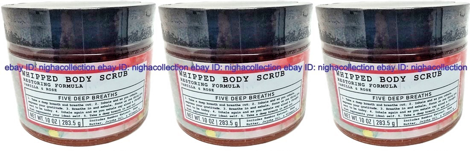 ( Lot 3 ) Whipped Body Scrub Five Deep Breaths Vanilla Rose 10 oz Each