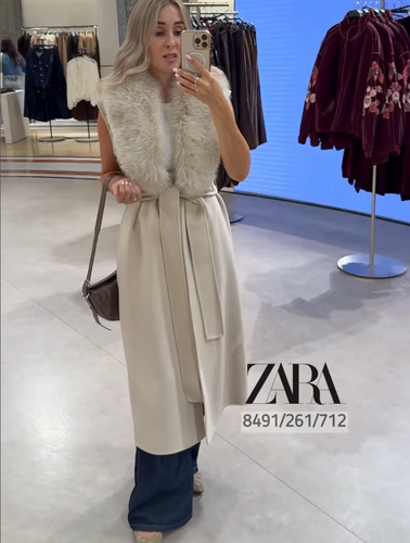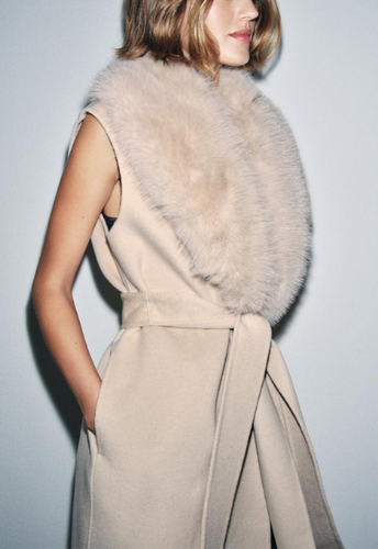 ZARA BNWT 2025. ECRU WOOL FAUX FUR COLLAR WAISTCOAT GILET. 8491/261/712