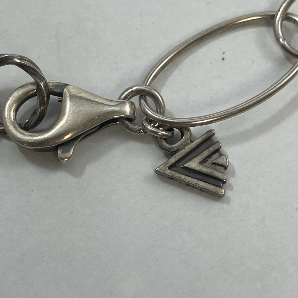 This retired Silpada necklace features a hammered oxidized sterling silver construction, with three hoops connected by a long 34-inch chain. The necklace weighs 23.5g and is a unique and stylish piece of fine jewelry. Perfect for adding a touch of sophistication to any outfit, this silver necklace is a timeless accessory that will never go out of style.