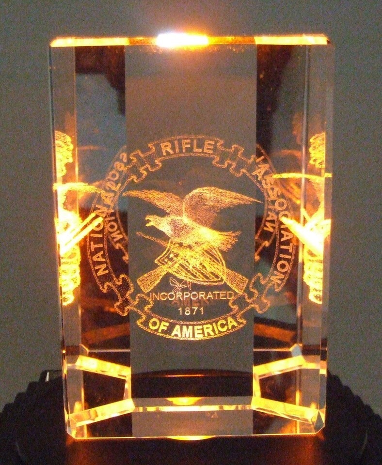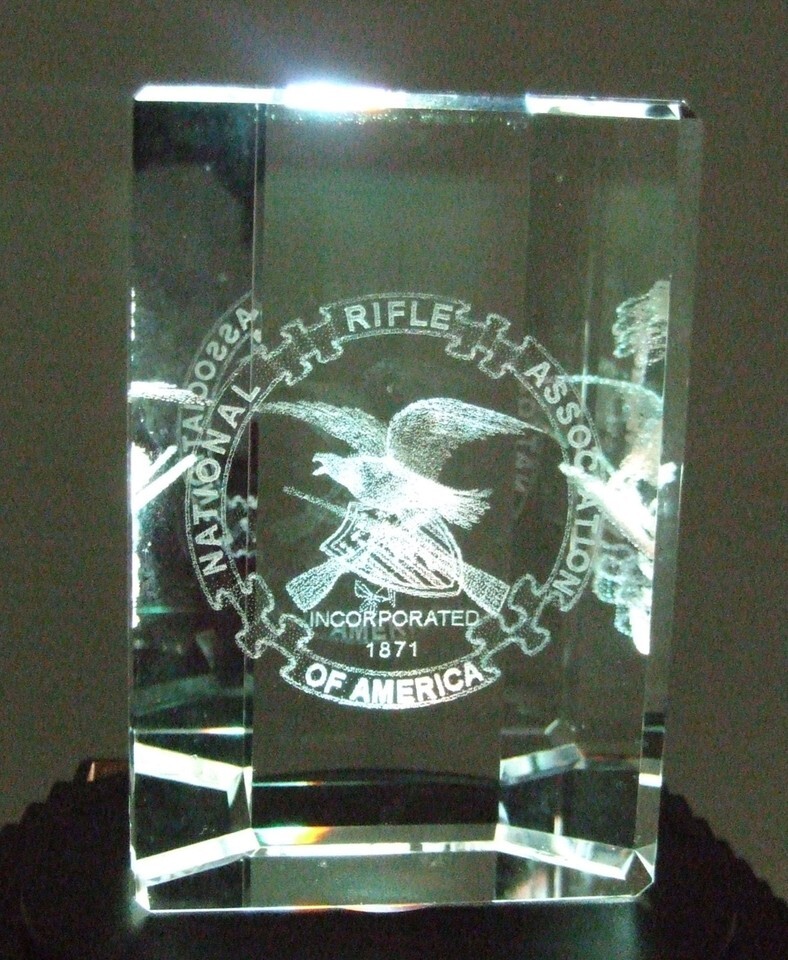3D laser design of several "NRA emblem" glass crystal- show original title O...
