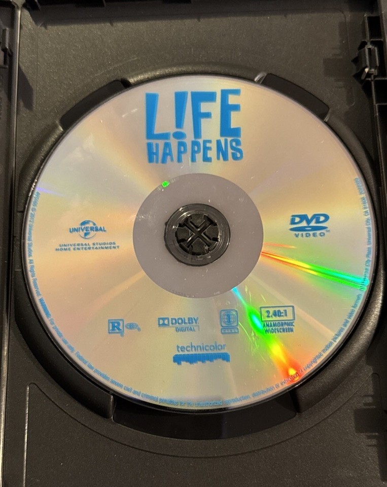 The product is a DVD of the movie "Life Happens," directed by Kat Coiro and starring Krysten Ritter, Kate Bosworth, and Rachel Bilson. Released in 2012, this comedy film falls under the sub-genres of Family and Buddy, offering a lighthearted and contemporary storyline. Produced by Justin Levine and distributed by Universal Studios, the DVD edition features additional scenes and has a run time of 101 minutes. The movie is in English language and is suitable for fans of feel-good comedies with a focus on relationships and personal growth.Please look at our store for unique collectibles and quality vintage items.