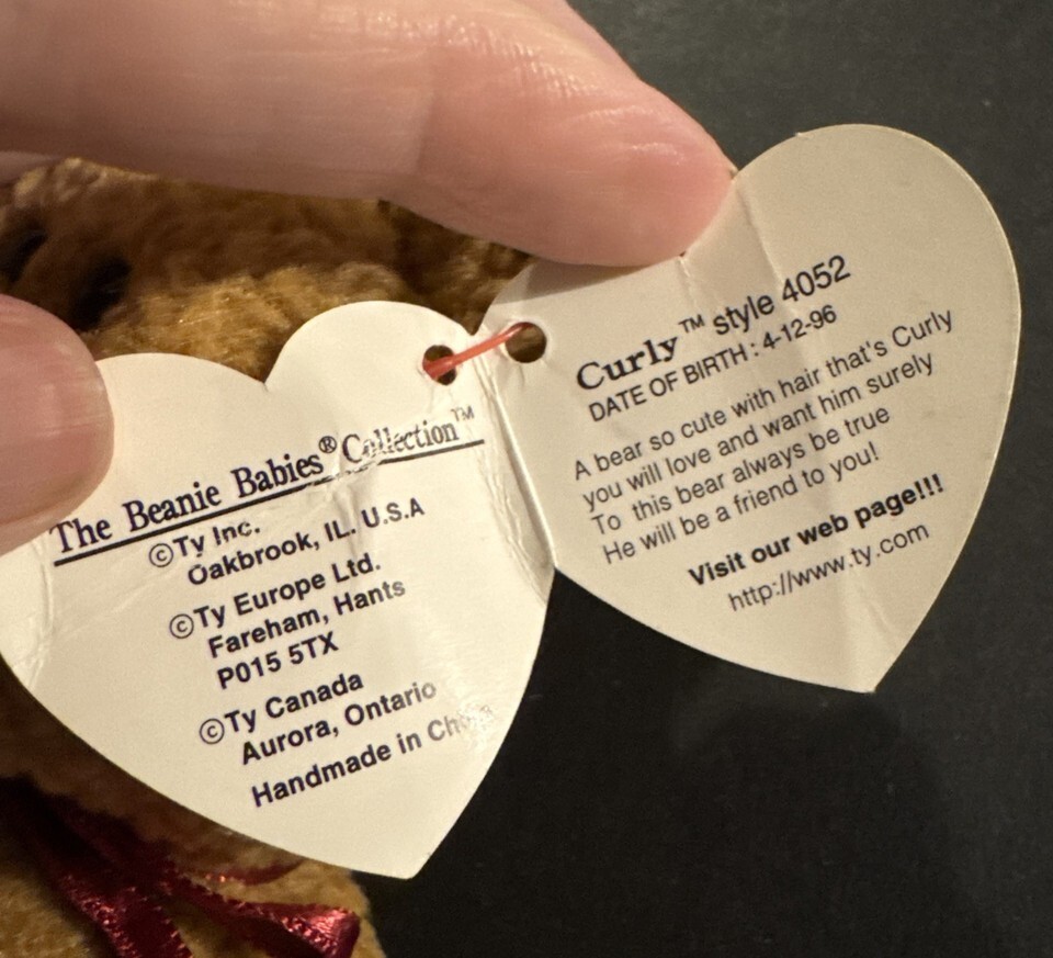 RARE ty Beanie Baby Curly the Bear - Tag Errors 1996/1993 & Brown Nose