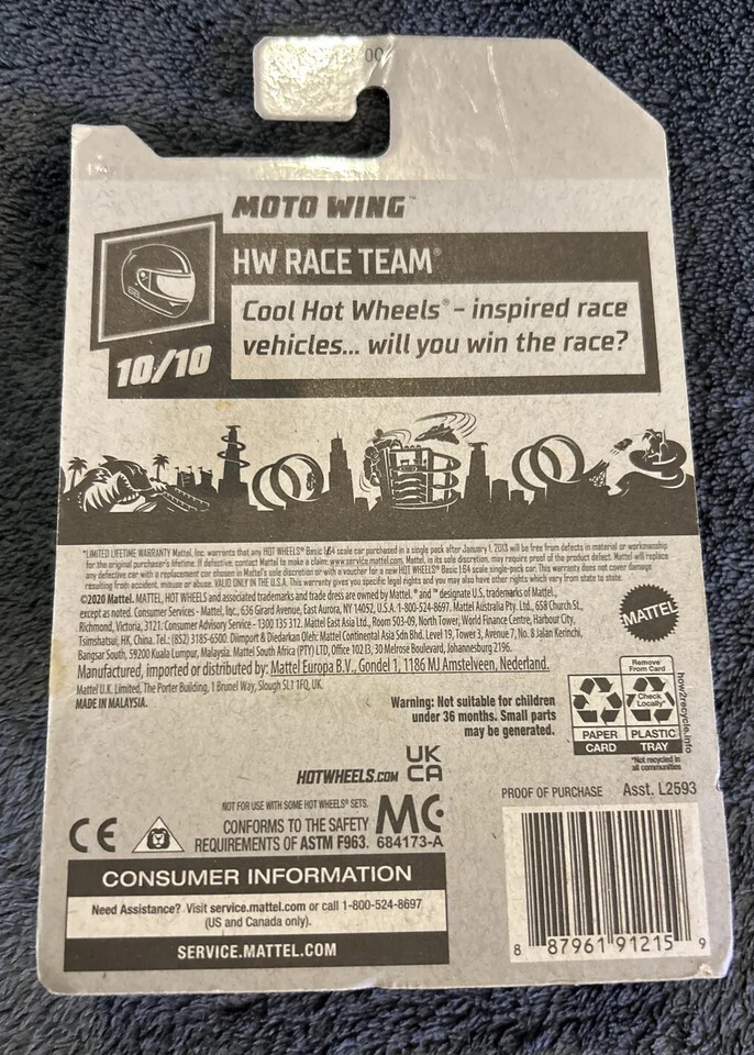 Own a piece of racing history with the Blue Moto Wing HW Race Team Diecast Car from Hot Wheels. This 1:64 scale car features a sleek blue design and is part of the Hot Wheels Race Team series, making it a must-have for car collectors and racing enthusiasts alike. The detailed diecast construction and vibrant colors make this car a standout addition to any collection, and the iconic Hot Wheels logo adds an extra touch of nostalgia.
