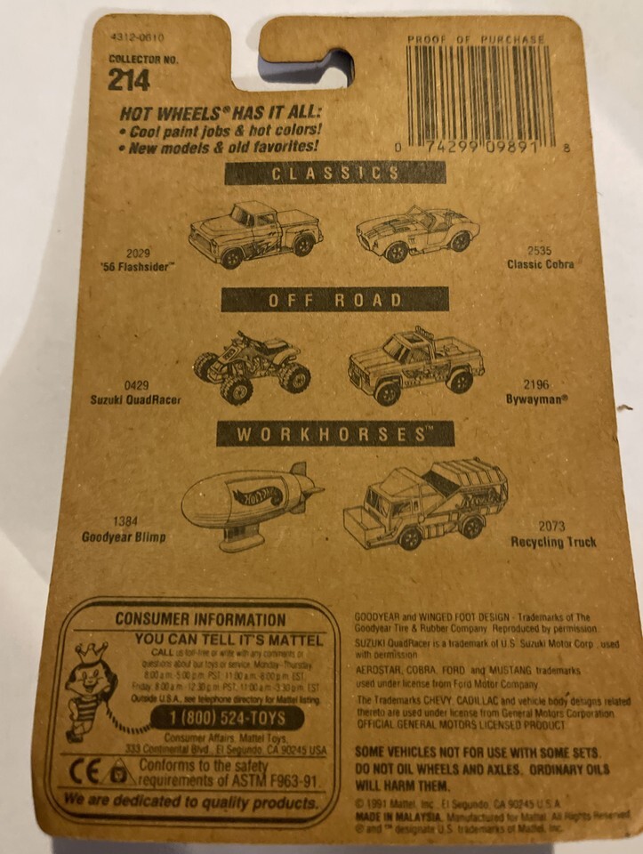 1991 Hot Wheels Swingfire #214 Blue And White Damaged Blister On Front 5sp Wheel. Condition is "New". Shipped with USPS Priority Mail.