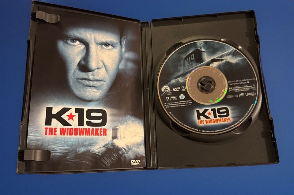 "K-19: The Widowmaker" is a PG-13 rated drama film from 2002, directed by Kathryn Bigelow and starring Harrison Ford and Liam Neeson. This wide-screen DVD edition from Paramount Pictures includes special features like a behind the scenes featurette. The film falls under the sub-genres of mystery and faith/spirituality, offering a compelling story set within the context of a historical event. With its gripping narrative and talented cast, this DVD is sure to engage viewers with its intense portrayal of events aboard the K-19 submarine.Please look at our store for unique collectibles and quality vintage items.
