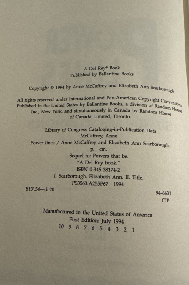 Power Lines By Anne McCaffrey - First and 50 similar items