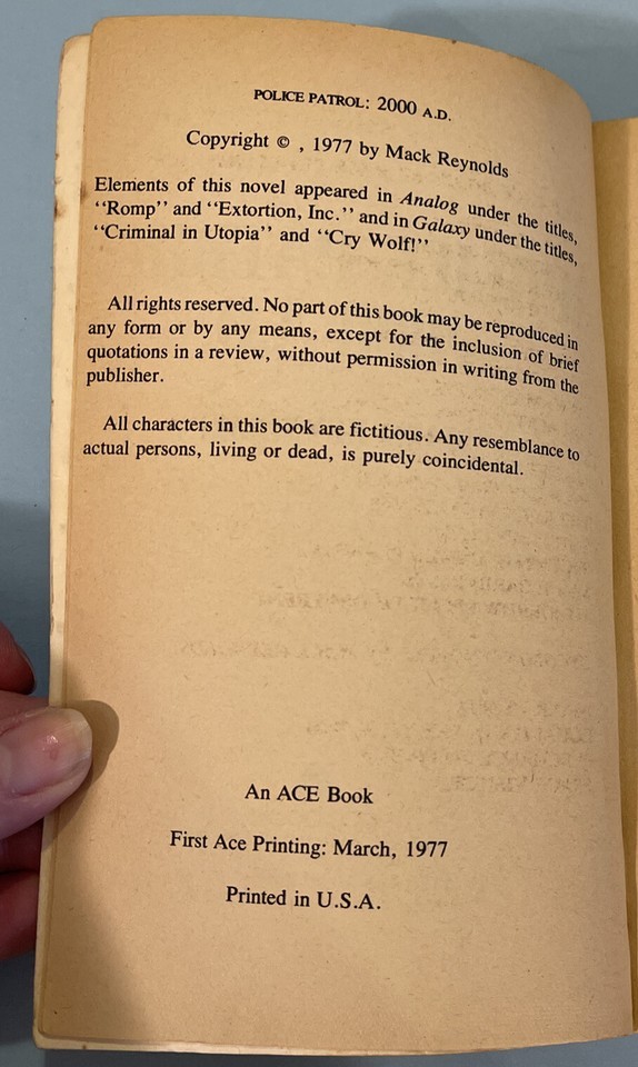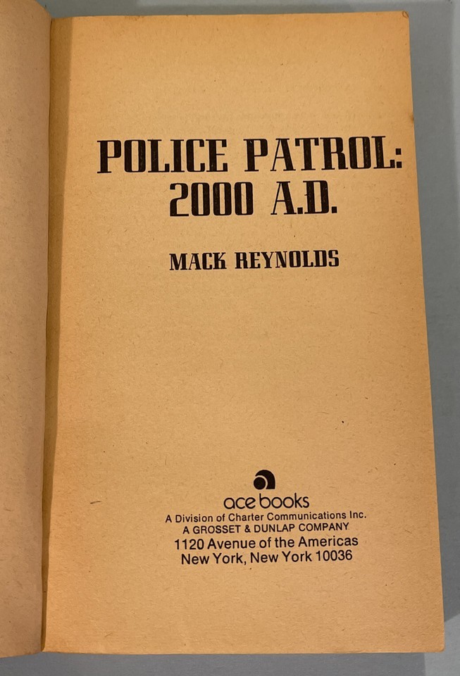 Police Patrol 2000 A.D. by Mack Reynolds 1977 ACE 1st Printing Paperback