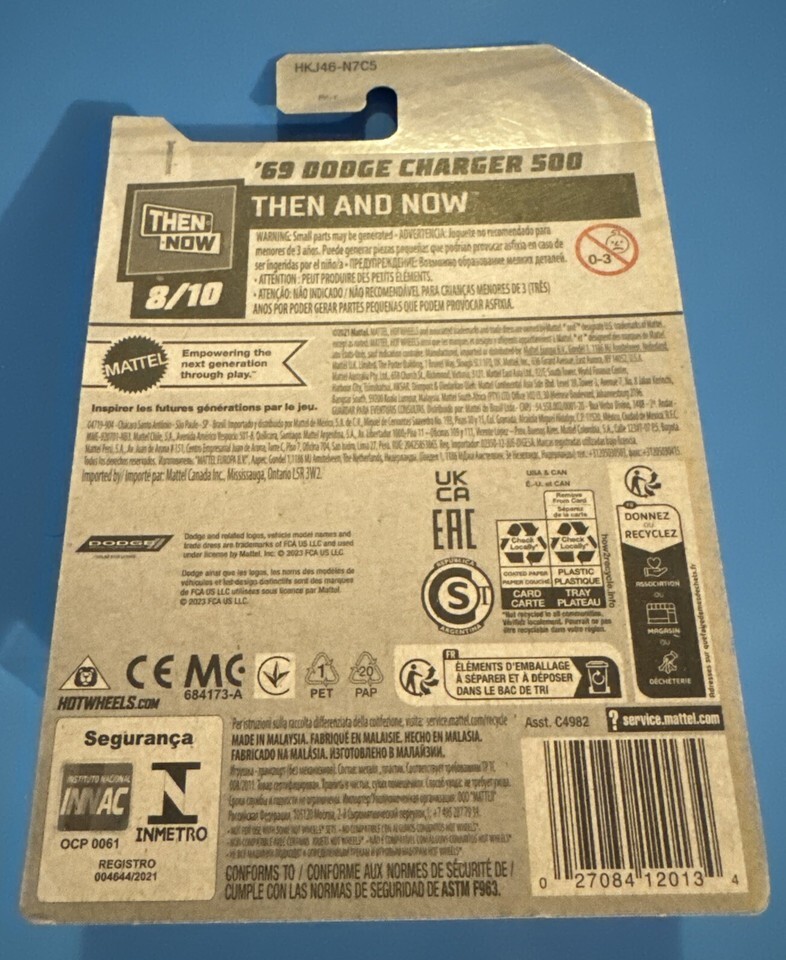 Get your hands on this awesome Hot Wheels 1:64 scale diecast car featuring the iconic 1969 Dodge Charger 500 model in a stunning purple color. This collectible car is part of the "Then and Now" series, and is the 8th out of 10 in the set. It comes in an unopened box that is ready to ship to your doorstep.