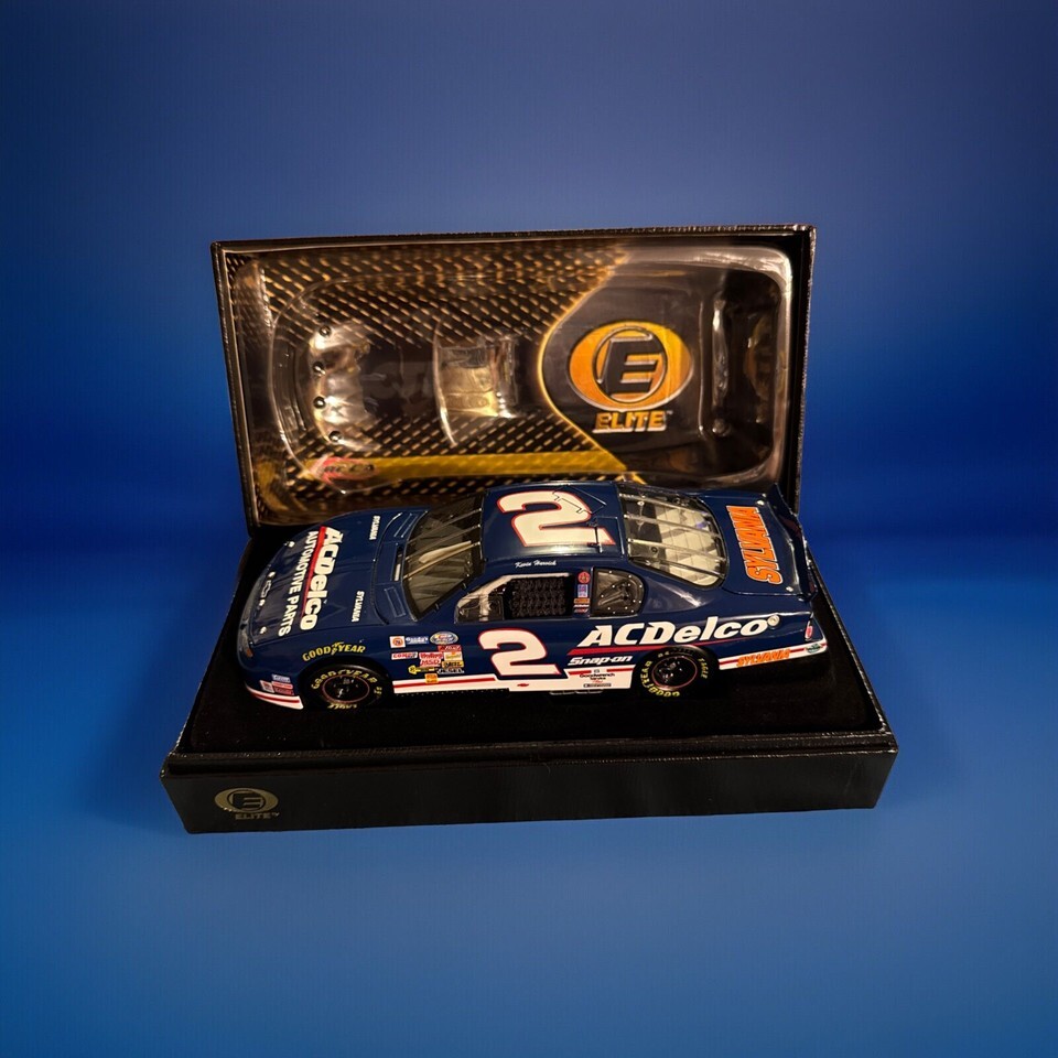 This is a rare and limited edition 1:24 diecast model of a 2001 NASCAR race car driven by Kevin Harvick in the AC-DELCO BUSCH SERIES ELITE. The car is a true collector's item, with only 804 produced, and this particular model is personalized with a unique number plate. It is a must-have for fans of Harvick and NASCAR, and features advertising specimens for AC-DELCO. The car is in great shape and ready for display or as a valuable addition to any collection.
