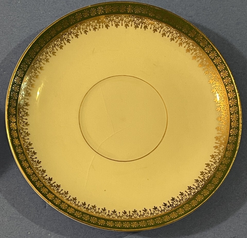 Antique Imperial Crown China Austria Cup Saucer Porcelain Gold Snowflake Trees.