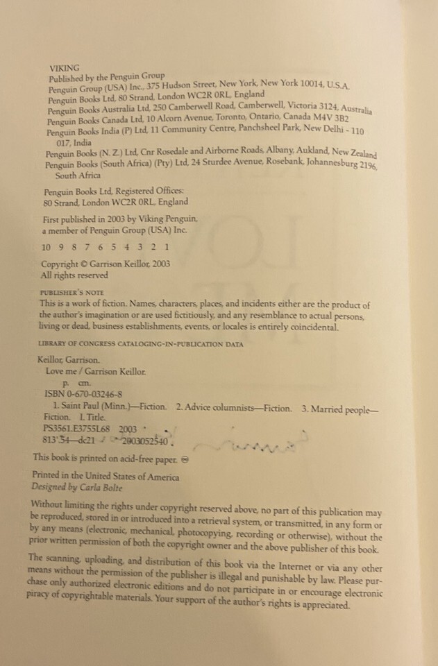 Love Me by Garrison Keillor (2003, Hardcover) *SIGNED* Autographed 1st Edition