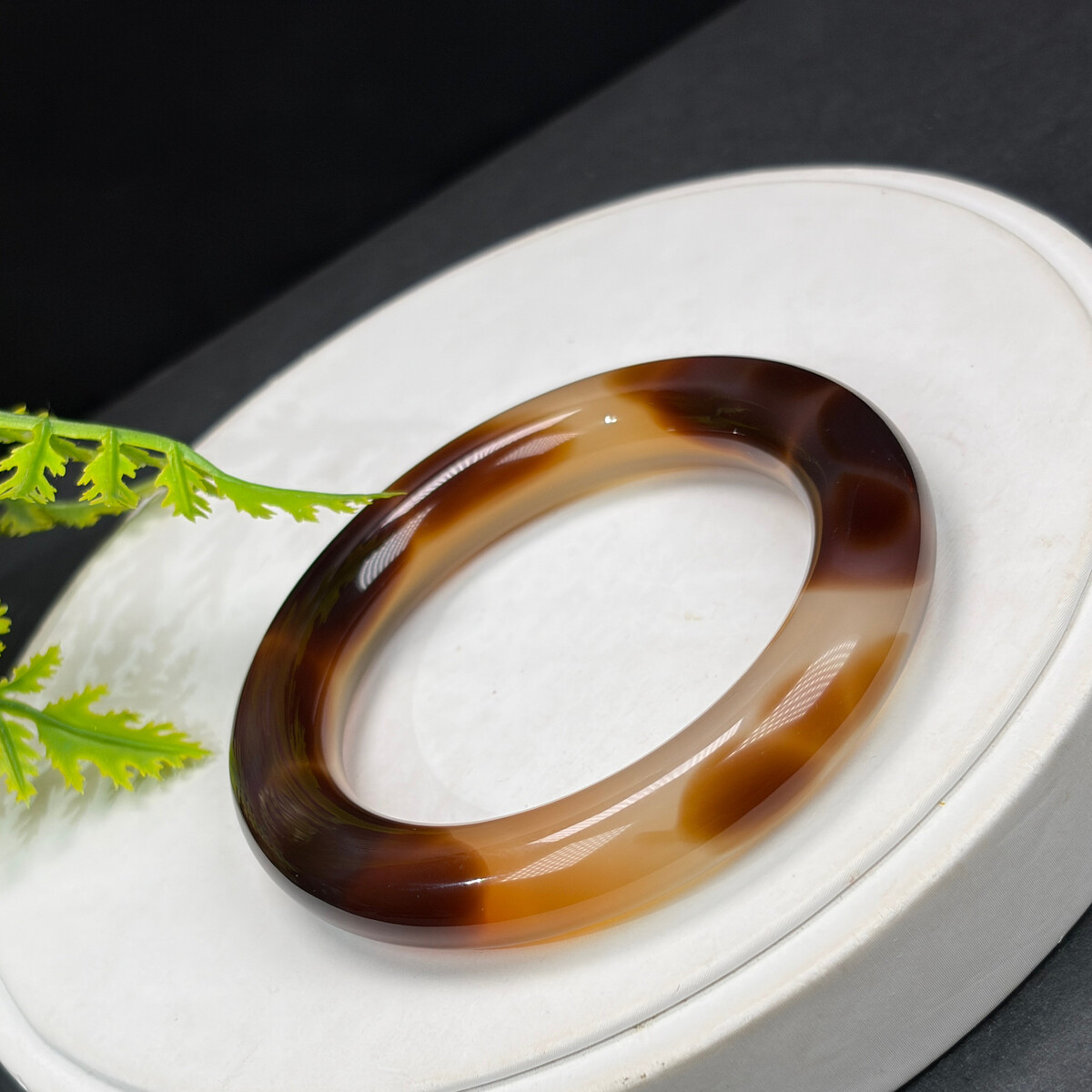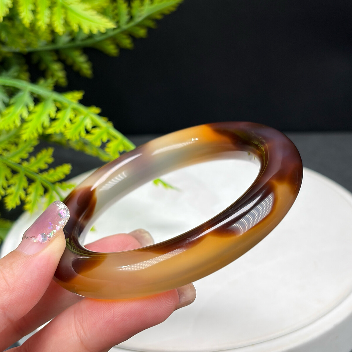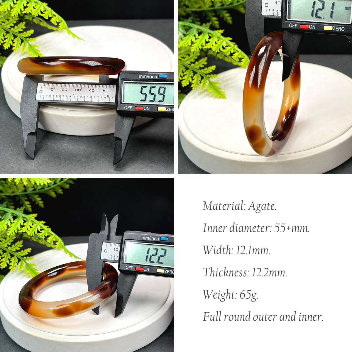 Rare Warm Brown Hues Agate Bangle 55+MM High Icy Translucent Clean Chunky Round