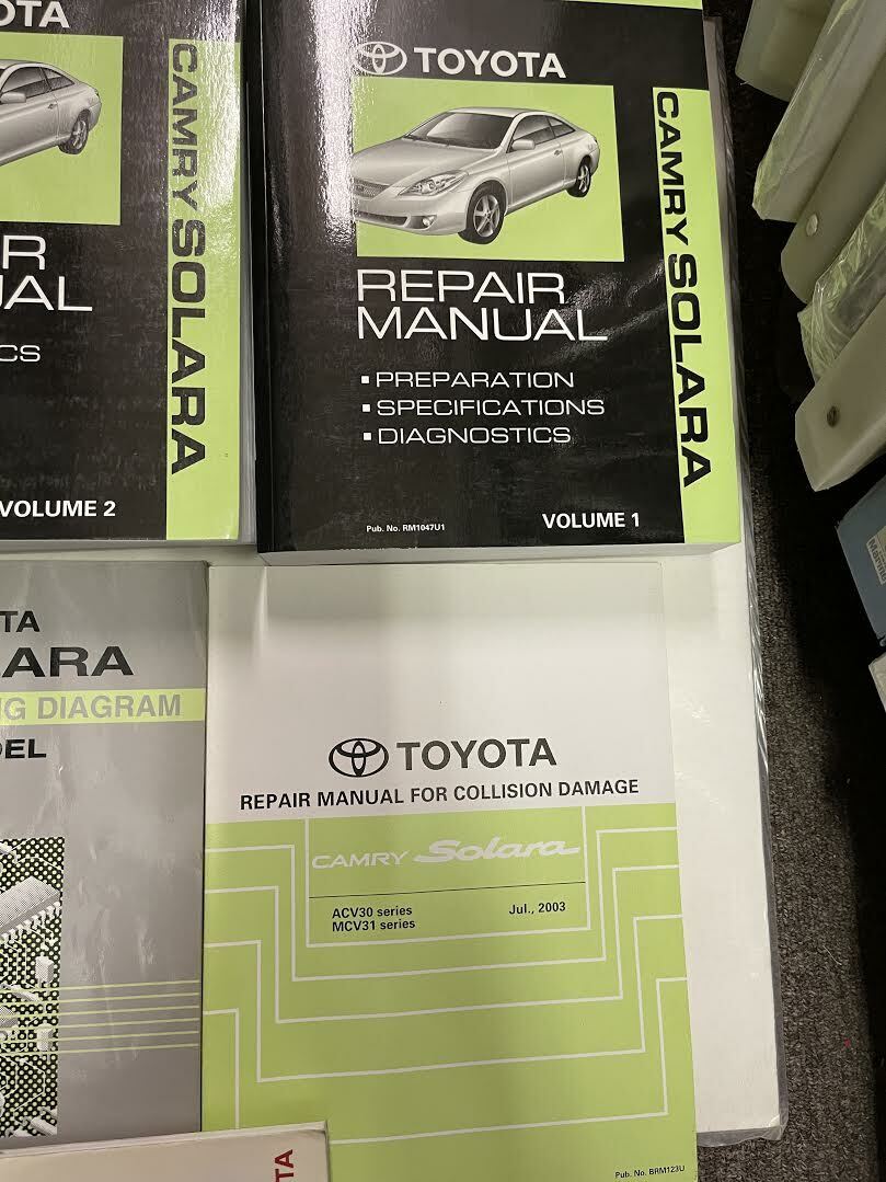 2004 Toyota SOLARA Factory Service Manual 3 Volume Set, Wiring Diagrams Manuals, New Car Features Manual, Collision Manual