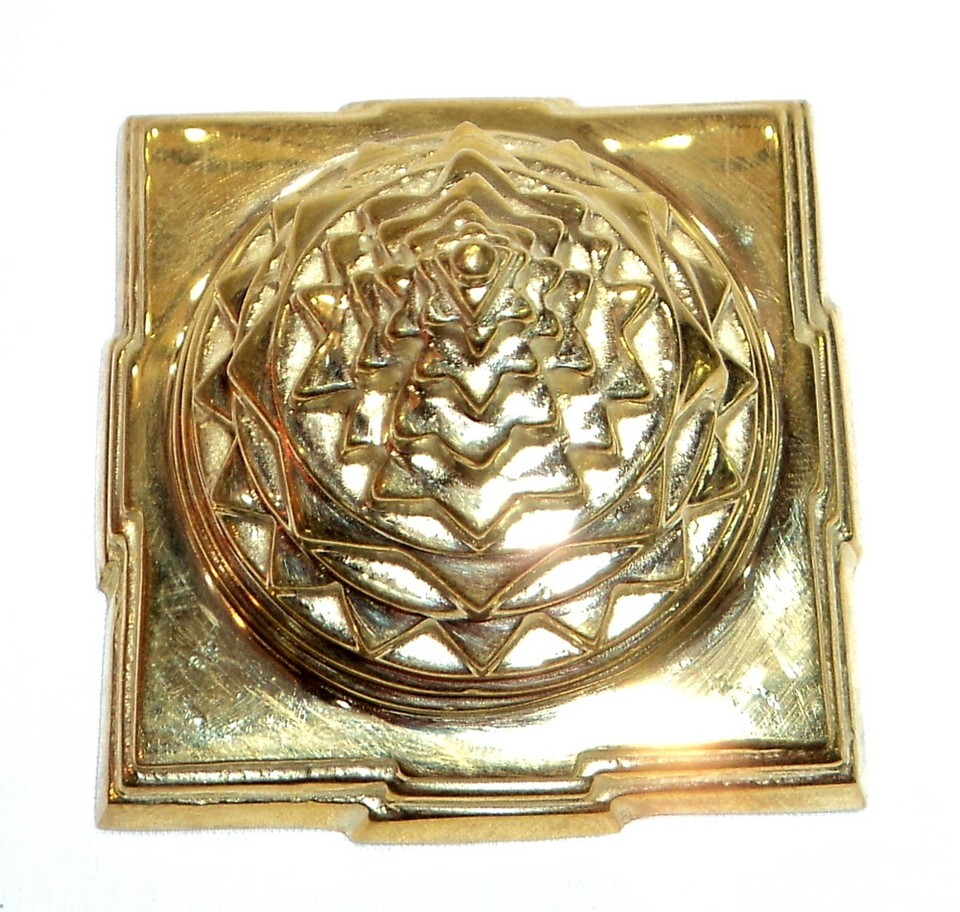 Diese Sriyantra besteht aus einem Messing mit einer hohlen Basis. Dies wird traditionell im Zentrum eines Grundstücks (Nabhi Sathan) begraben, um den Bewohnern kontinuierliche Wellen des Wohlstands und des Wohlbefindens zu gewahrleisten.