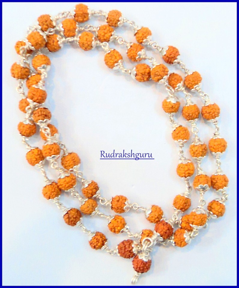 Rudraksha Mala in Pure Silver - 54+1 beads - 6 mm