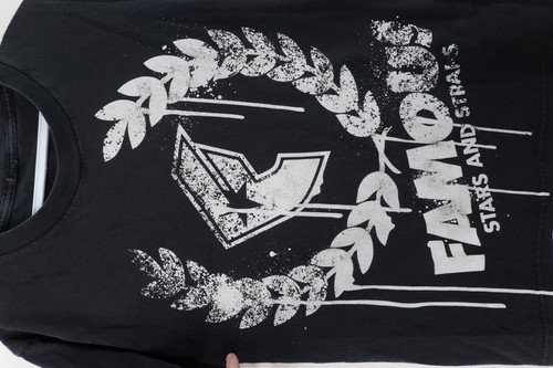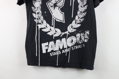 Vintage Famous Stars and Straps Mens Small Distressed Spell Out T-Shirt Black