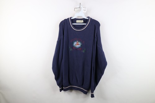 Vtg 90s Streetwear Mens L Faded Country Wildlife Duck Thermal Knit Sweater USA