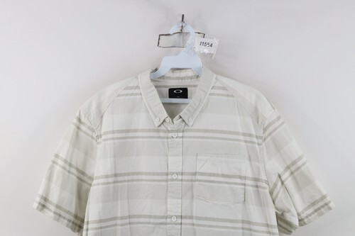 Vtg Y2K Oakley Mens Large O Logo Striped Short Sleeve Collared Button Down Shirt