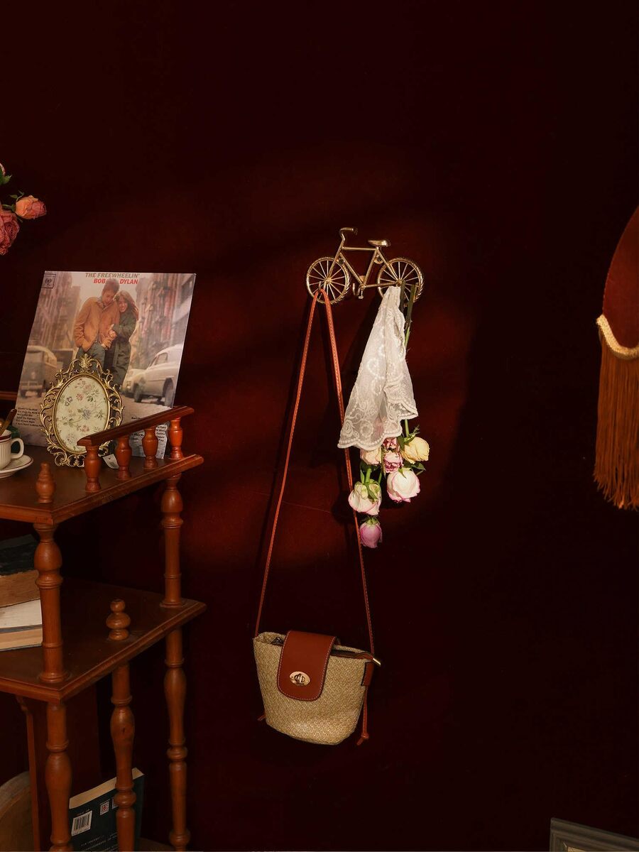 interoknack Vintage Bicycle Wall Hook, Gold Alloy Decorative Coat Hook, Modern L