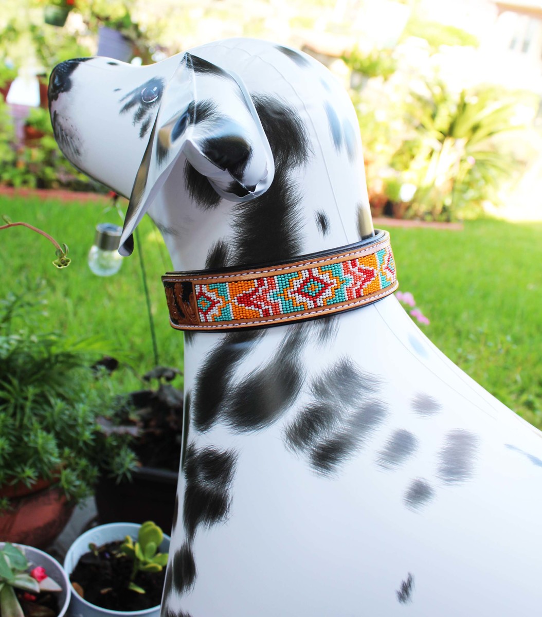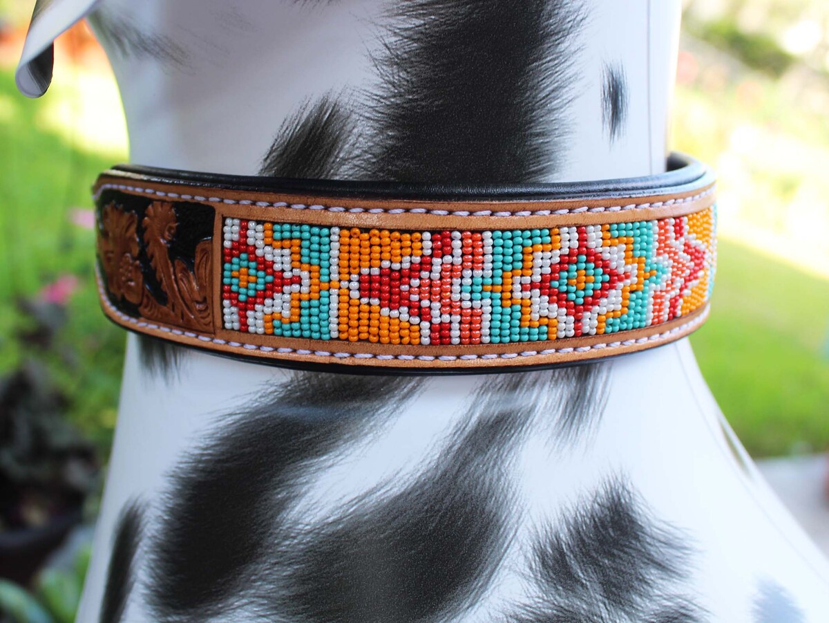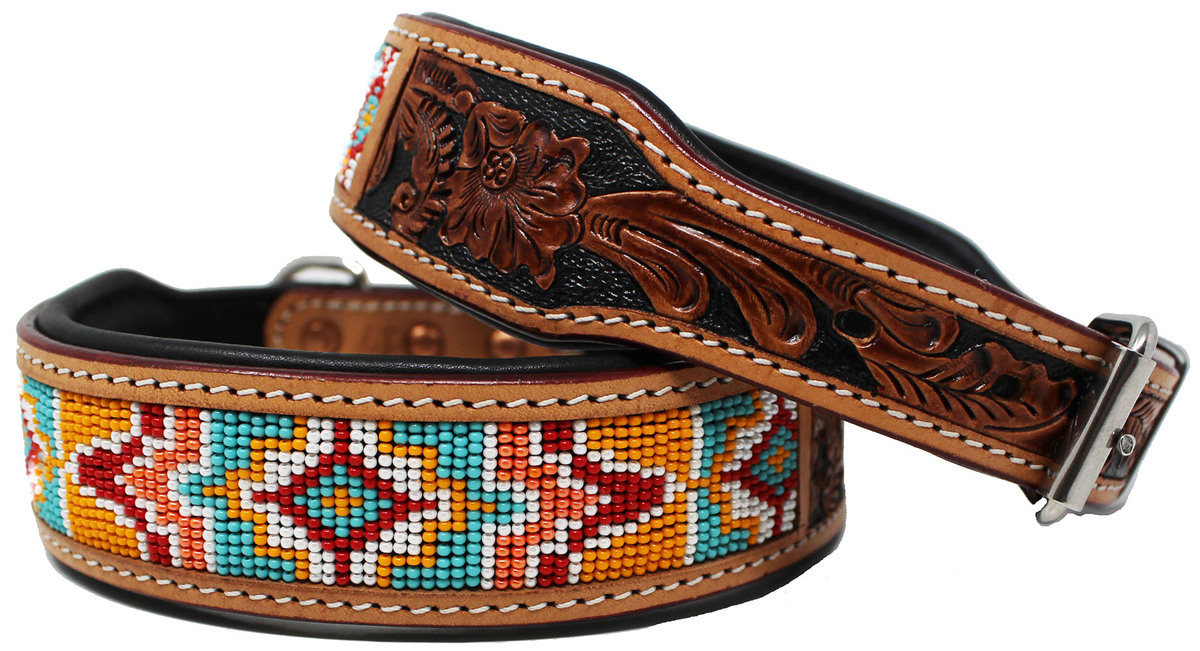 Hand Tooled Beaded Padded Leather Dog Collar and similar items