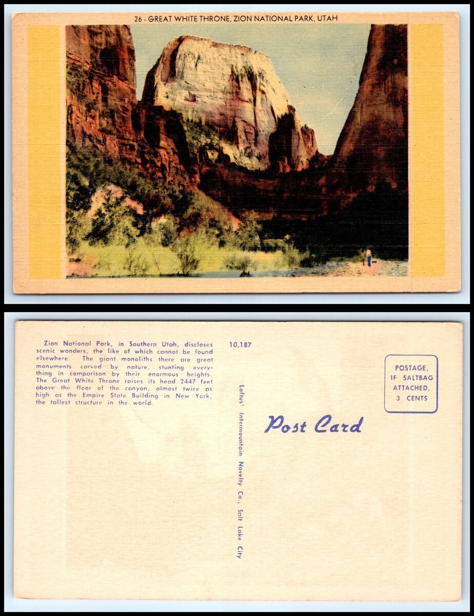 UTAH Postcard - Zion National Park, Great White Throne Q8