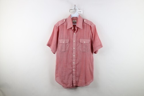 Vintage 70s Streetwear Mens Medium Distressed Safari Military Bush Button Shirt