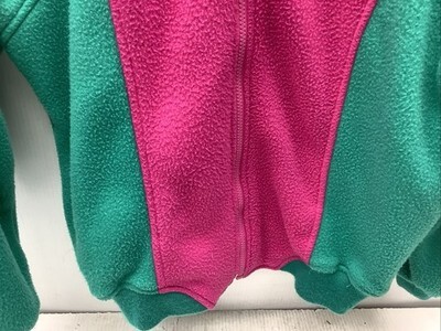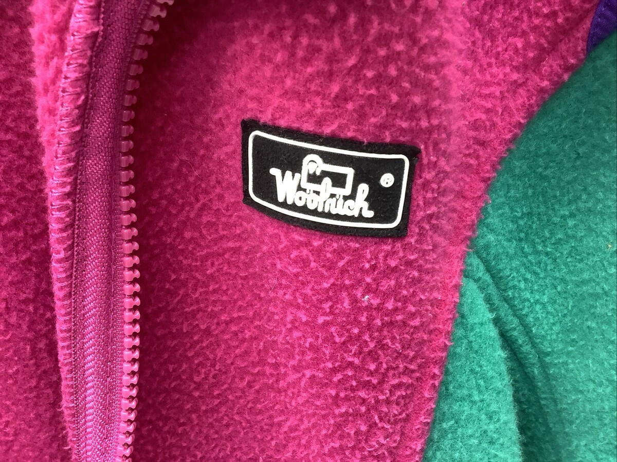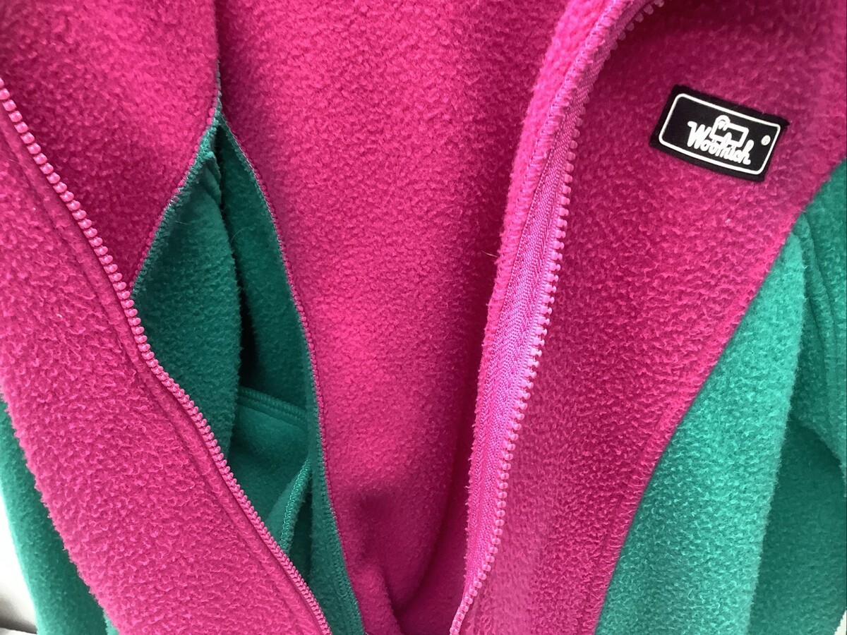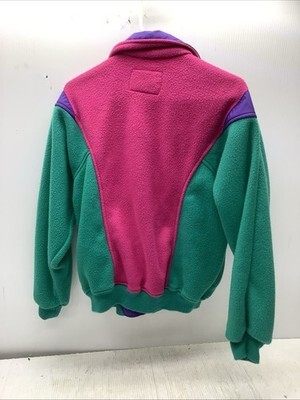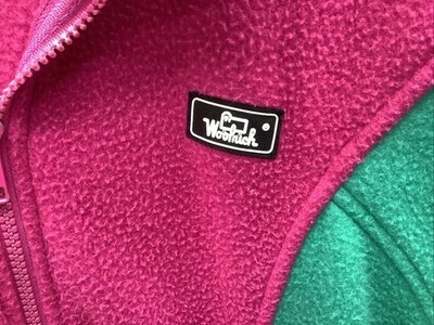 Vtg Woolrich Womens Full Zip Mock Neck Fleece Jacket Hot Pink Teal Blue Sz Med