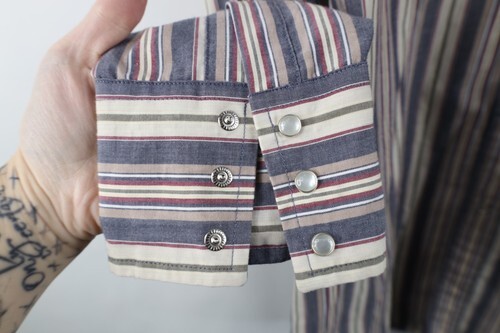 Vintage 90s Streetwear Mens Medium Striped Color Block Western Button Shirt