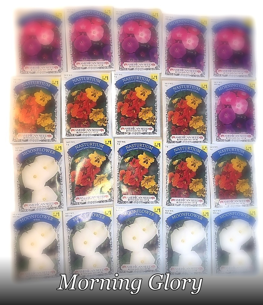Vibrant Colors 20 Packs Of Flower Seeds- 6 Moonflower 8 Nasturtium 6 Morning