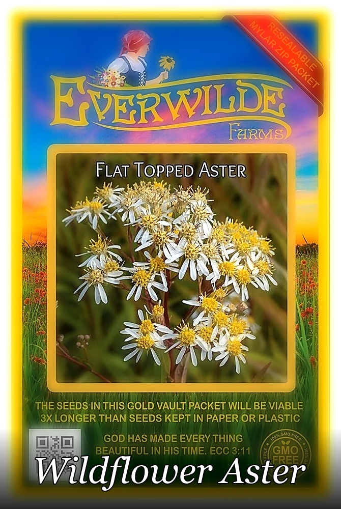 500 Flat Topped Aster Wildflower Seeds - Everwilde Farms Mylar Seed Packet