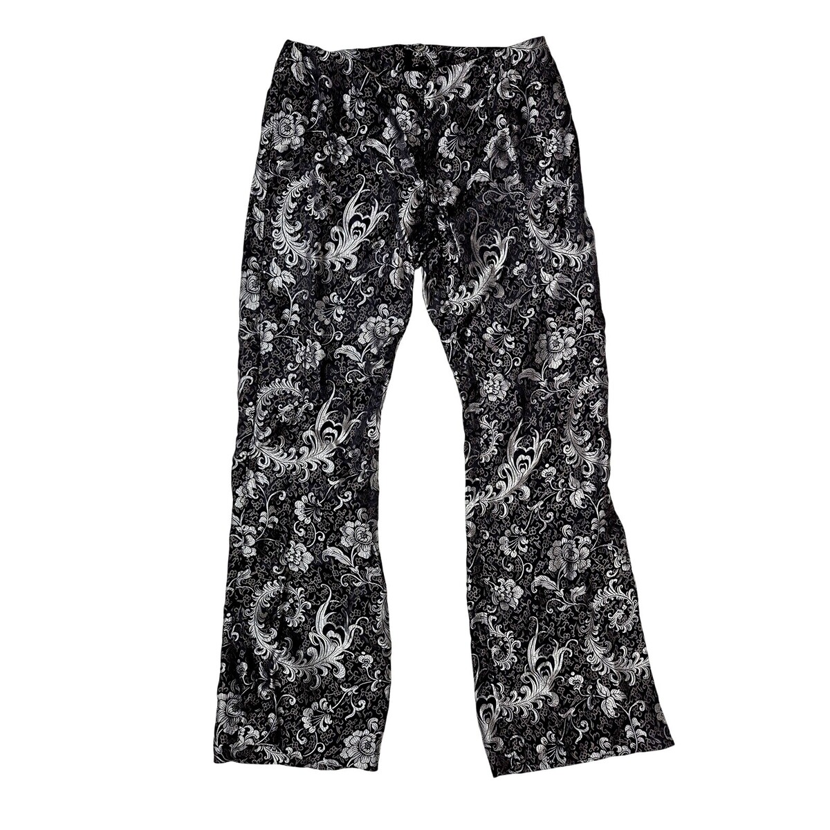 Vtg Willi Smith Pants Black Silver Damask Floral Boot Cut Zip Back Flat Front 8