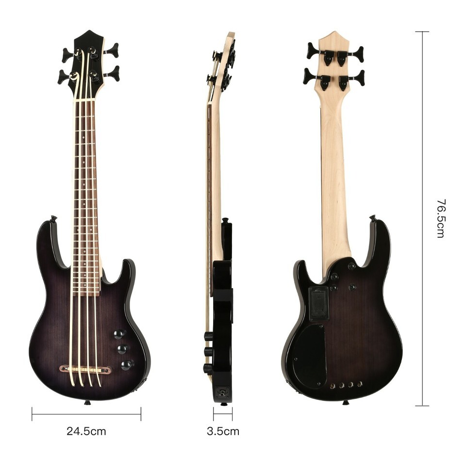 Batking Ukulele Electric Bass Uke Aquila String F/Italy EADG Ash Wood Body W/Bag