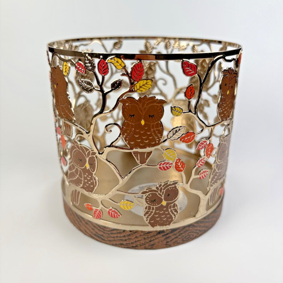 You will get a brand new in box Bath Body Works OWLS Colored Leaves Large 3 Wick Candle Holder Sleeve NWT as shown in the pictures.