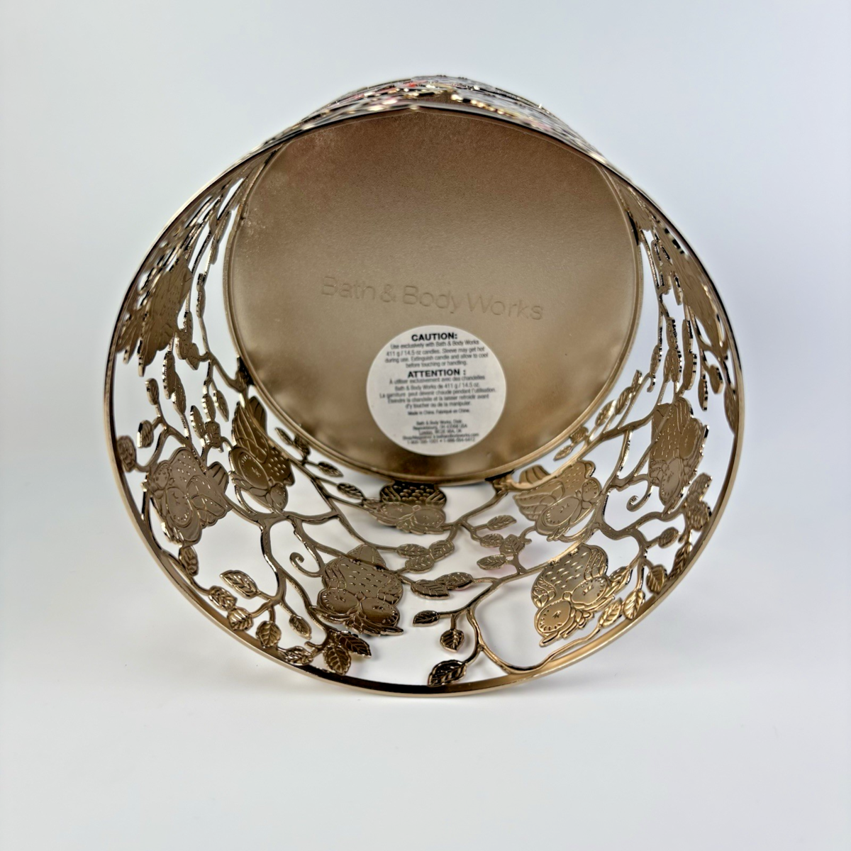 Bath and Body Works Sleeping Owl 3 Wick Candle Holder Metal Sleeve Jar Lantern