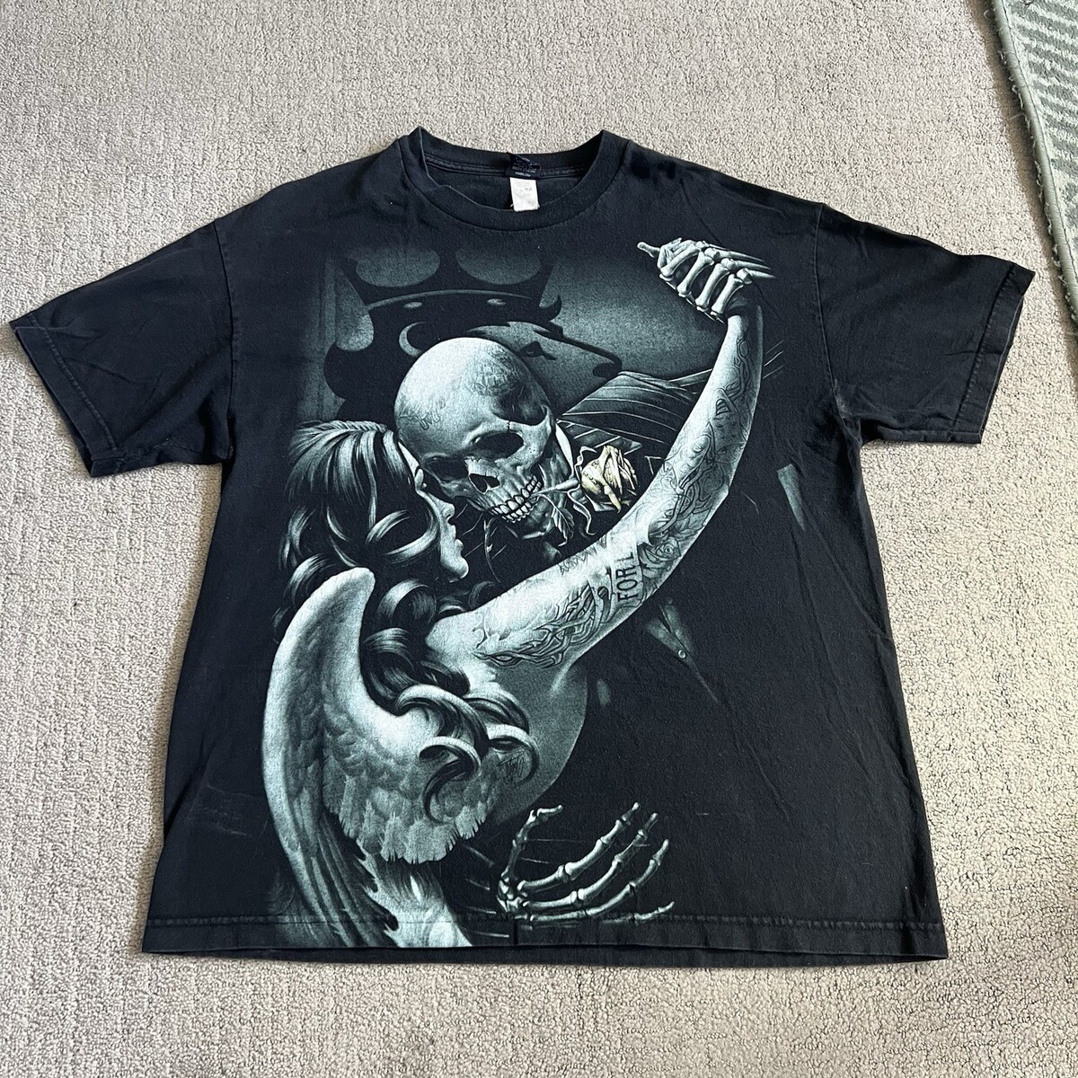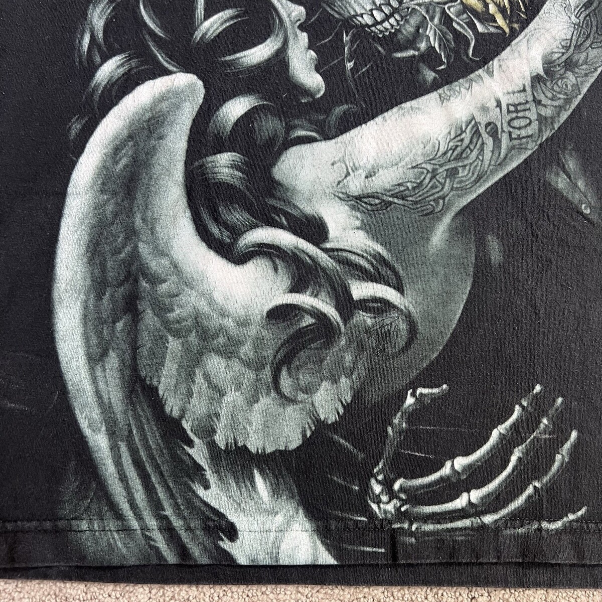 Vintage OG Abel Men's T Shirt Sz XL Tango Skeleton Angel Rose Double Sided Y2K
