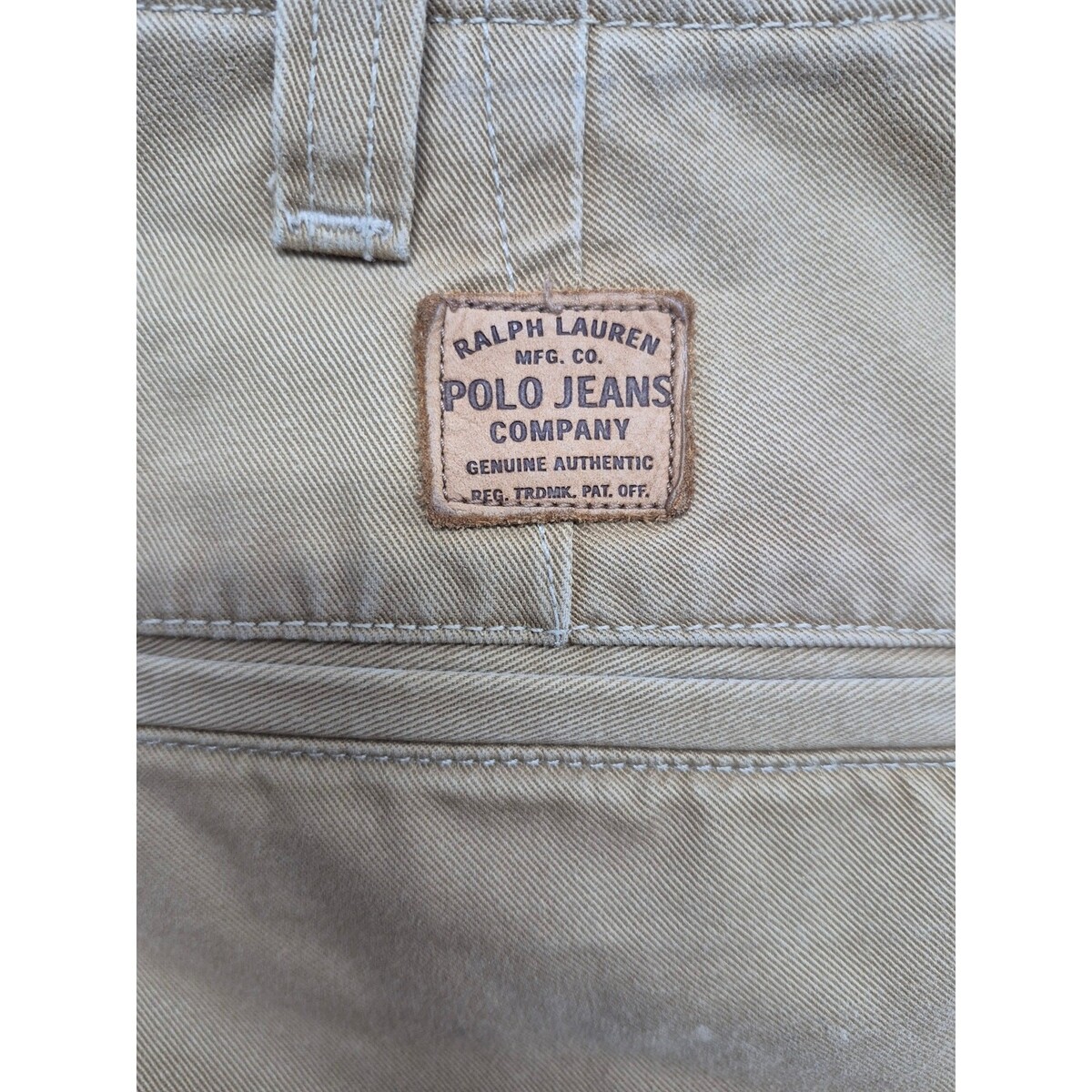 Elevate your casual wardrobe with these classic Ralph Lauren Polo Jeans Co. khaki pants. Crafted from comfortable 100% cotton, these versatile brown khakis are in excellent condition, ready for everyday wear or smart-casual occasions. Though marked 32x30, please review the precise measurements below to ensure your perfect fit.