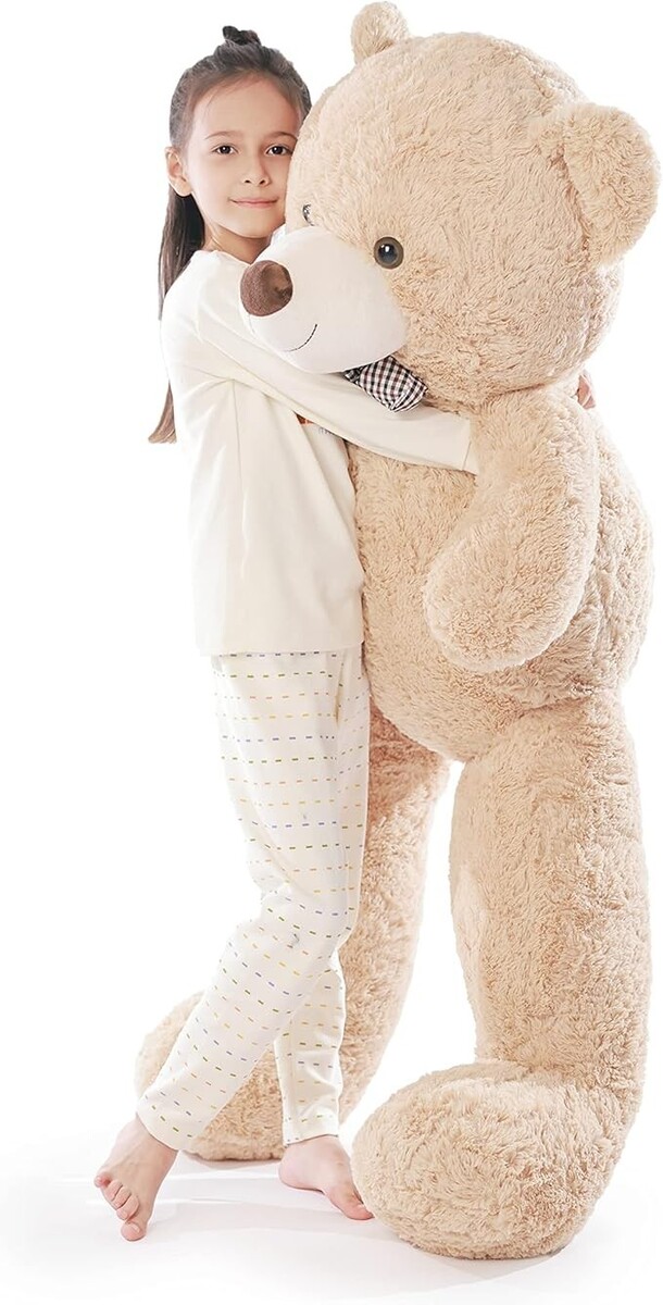 CLASSIC TEDDY BEAR --- Our best-selling classic 55 inch brown teddy bear is designed for cuddling and snuggling. With its tall profile, soft and fluffy fur, adorable face with a friendly smile, complete with a plaid bow, it's really perfect for everyone! The giant teddy bear is always there for you!