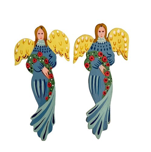 Angel Ornaments 1984 Winterthur Museum Lot Of 2 Handpainted Wood Christmas 2 E38