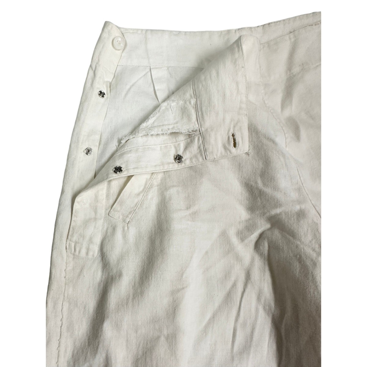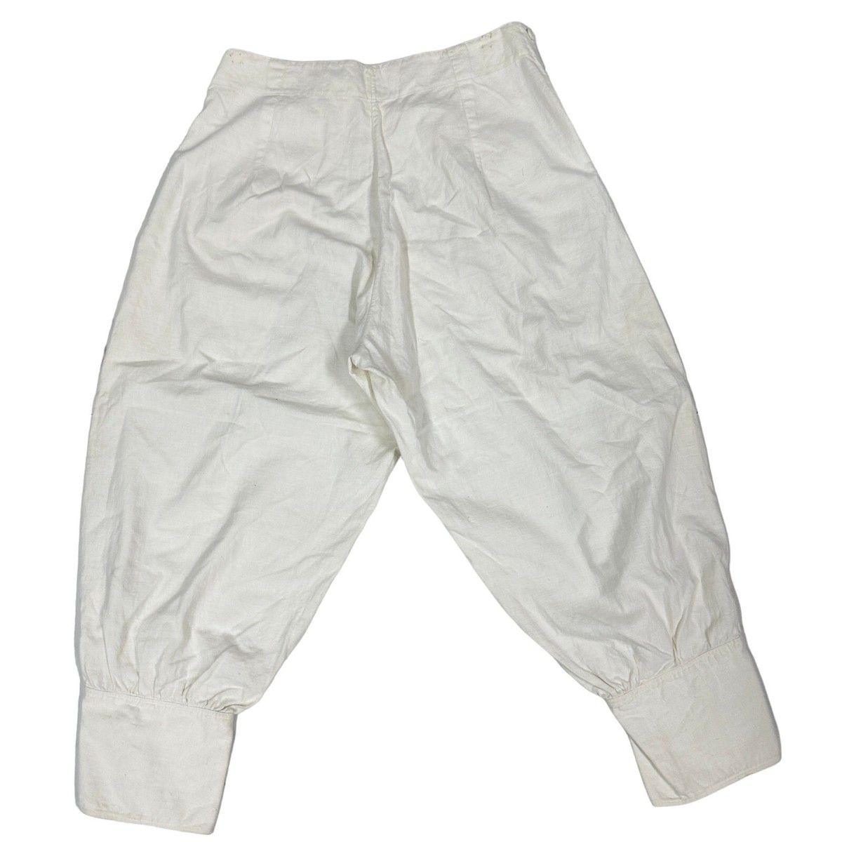 Provenance Note: Linen knickers and kickers were popular in the 1920s and 1930s for golf, cycling, and casual wear. Depression-era examples in natural linen are less common, as most surviving pairs are wool. Functional side closures and cuff buttons were typical of the era?s tailoring.