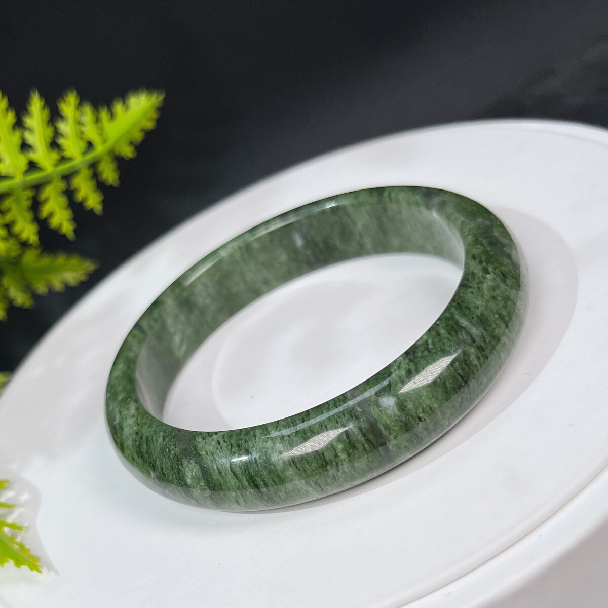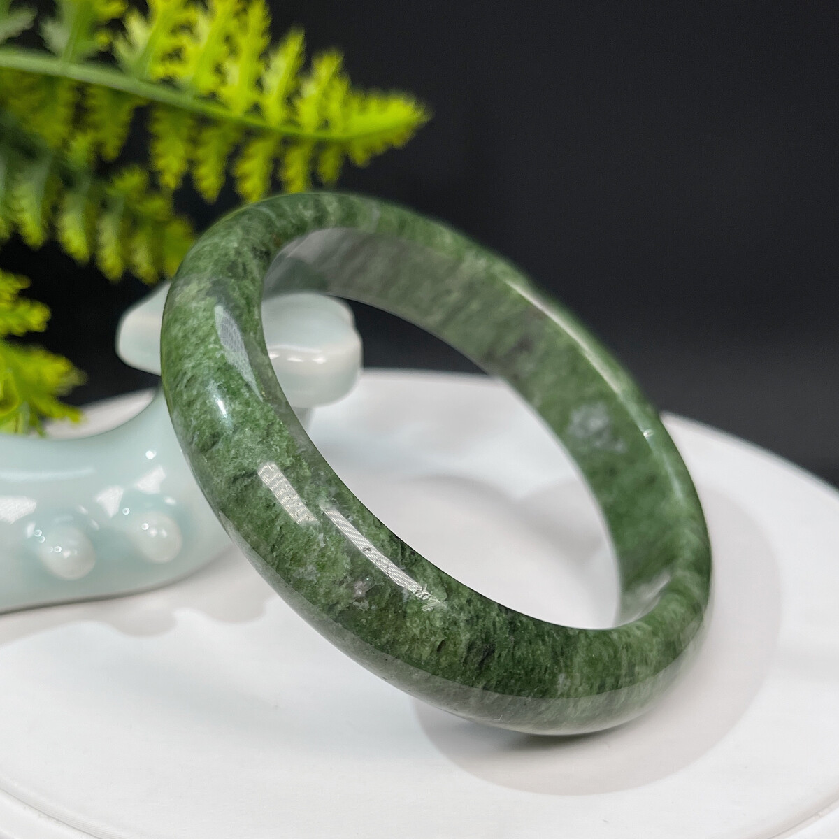 Green Phantom Quartz Bangle 60MM Icy Translucent Multi-inclusions