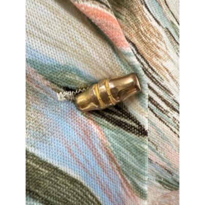 VTG 1970s Abstract Print Multicolor Polyester Knit Dress Jacket Womens M-simple short-sleeved dress with back zip and jacket with unique brass barrel buttons. Made with loving hands at home. In very good condition, no flaws.