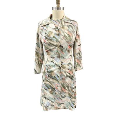 VTG 1970s Abstract Print Multicolor Polyester Knit Dress & Jacket Womens S