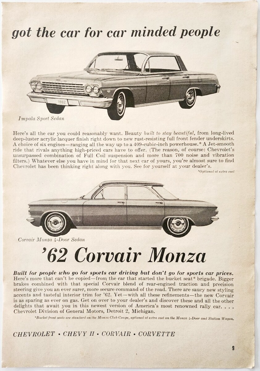 1962 Chevrolet Impala Corvair Monza Advertisement Automobilia Chevy DWF28