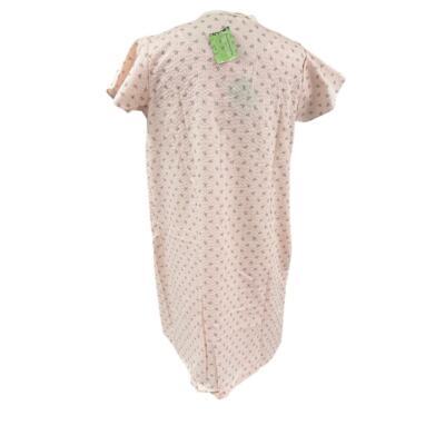 Vintage 1960s New Old Stock Amy Sue Poly/Cotton Pink Rose Print Nightgown and Robe Set, Size Medium. Both garments feature aesthetically pleasing pink tonal buttons and bows for closure, crafted from cotton seersucker material.
